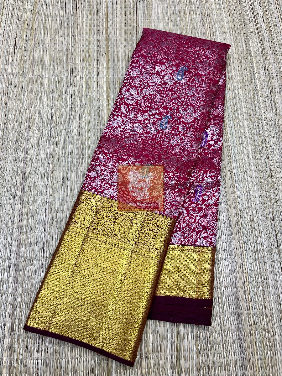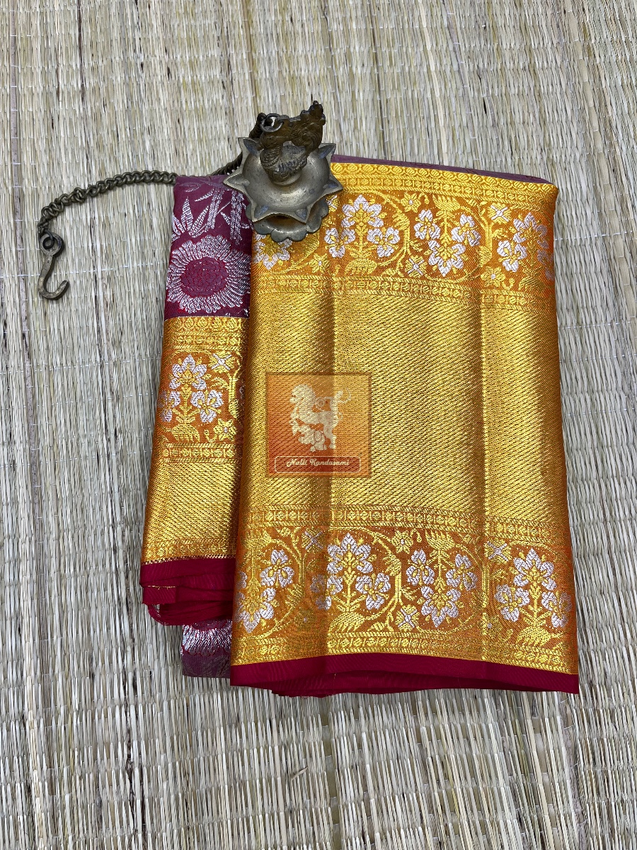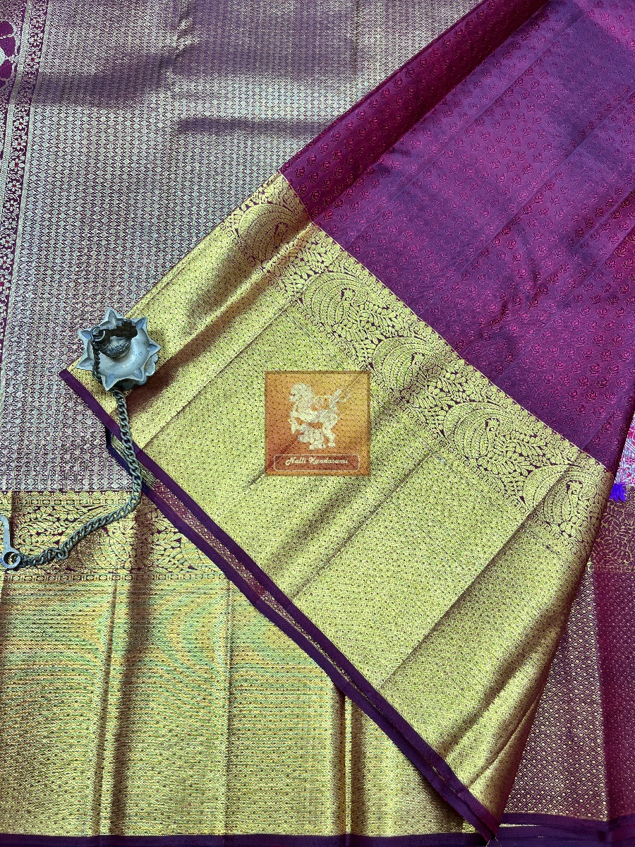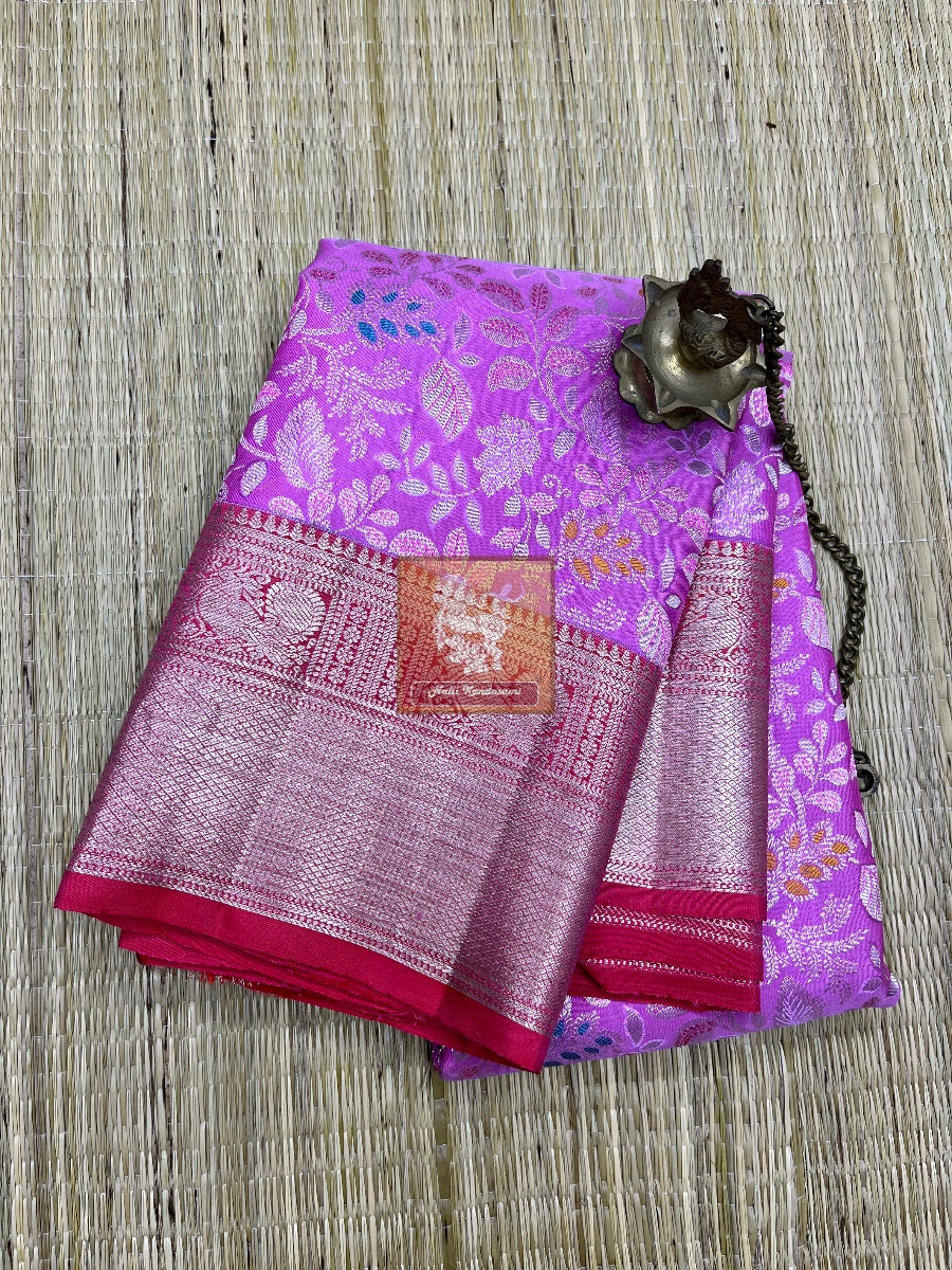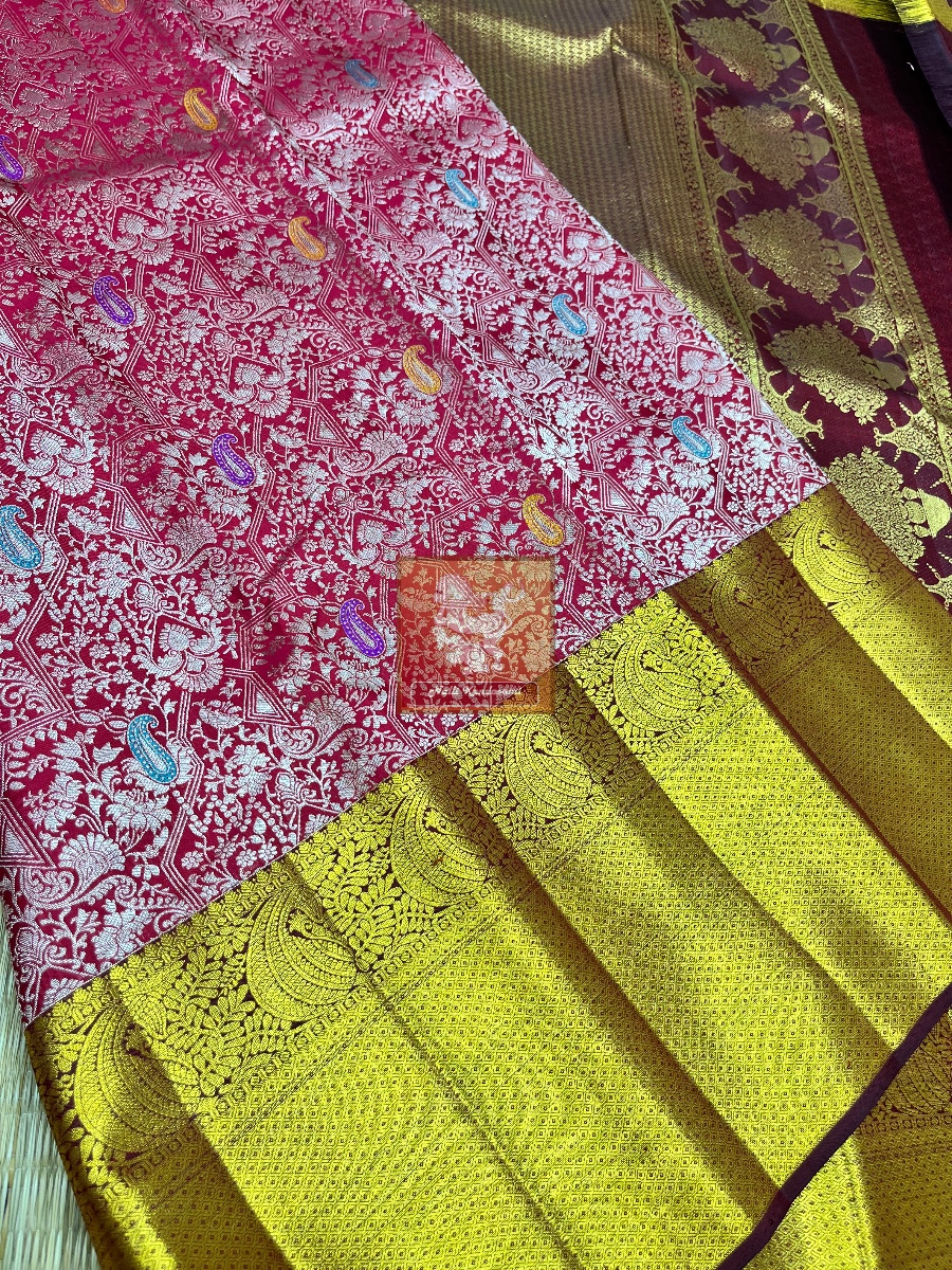 Add a pop of color to your wardrobe with our Strawberry pink Meenakari body with traditional Araku pallu, blouse Handloom Kanjivaram silk saree. Handcrafted with the finest silk, this saree is both elegant and comfortable to wear. Elevate your style and make a statement while supporting traditional Indian art with this stunning saree.